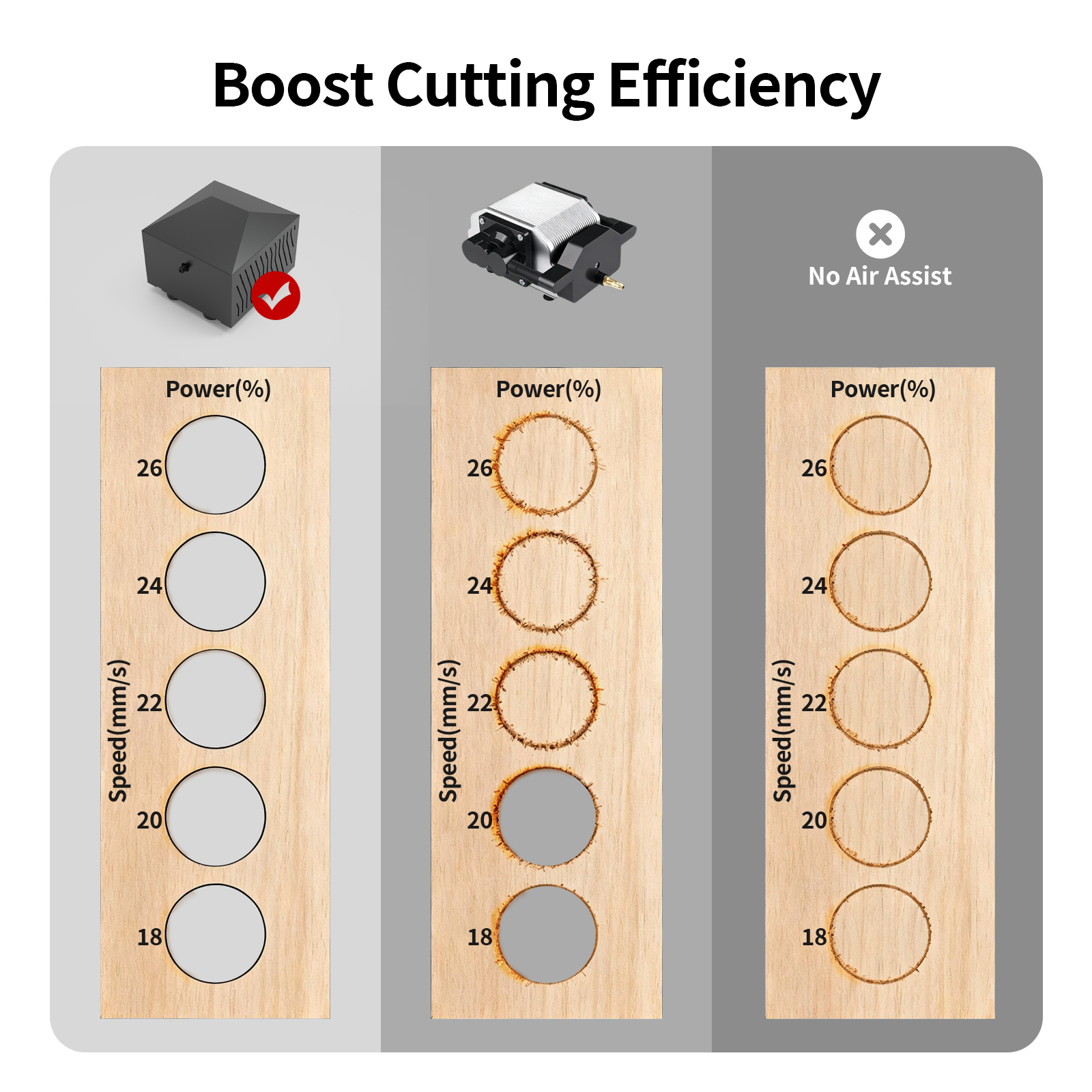 25 L/min of stable, high-volume airflow ensures uninterrupted,high-speed cutting to get jobs done faster, from thin sheets to thick materials