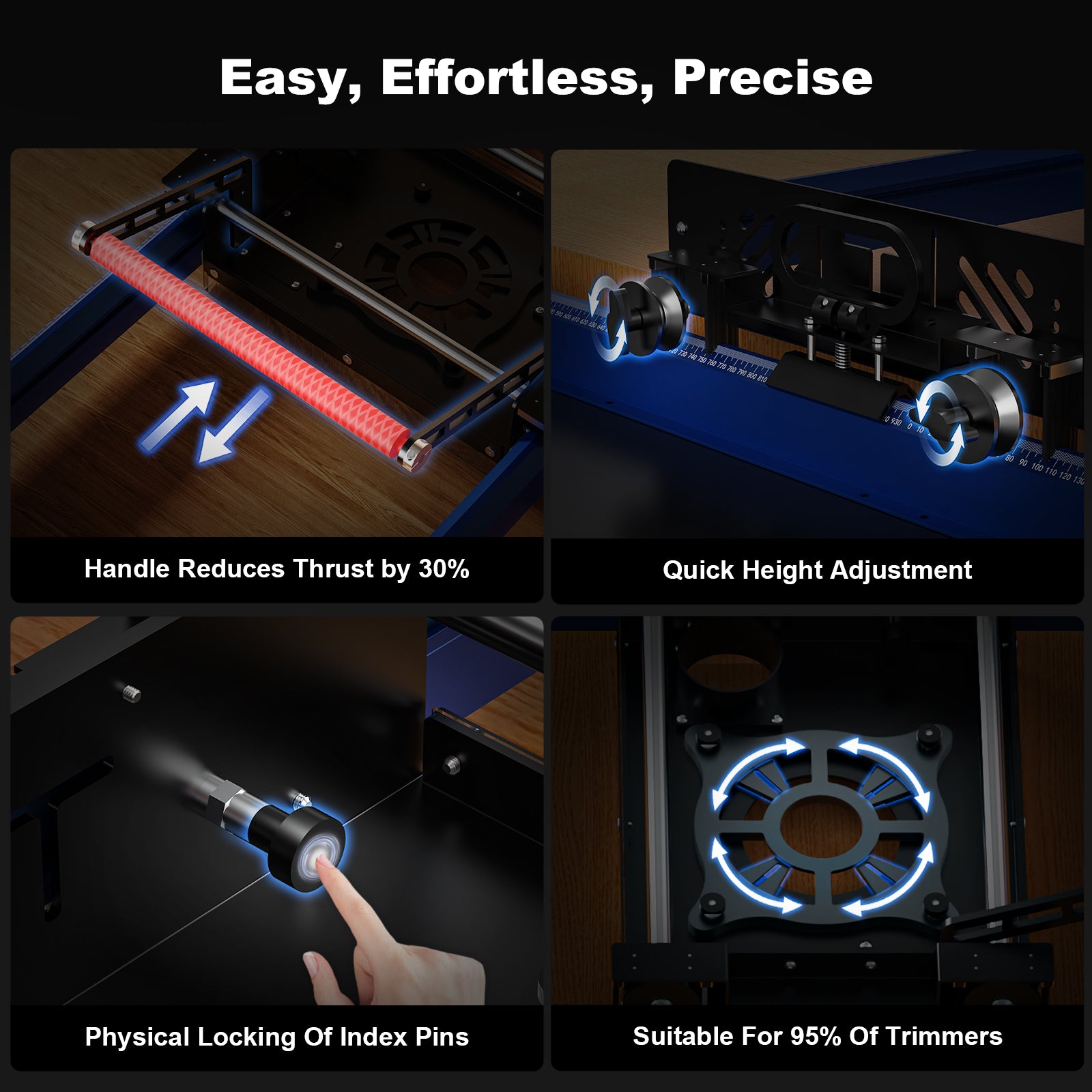 Tool-less, Quick Z-axis Height Adjustment To Suit a Wide Range Of Machining Requirements.