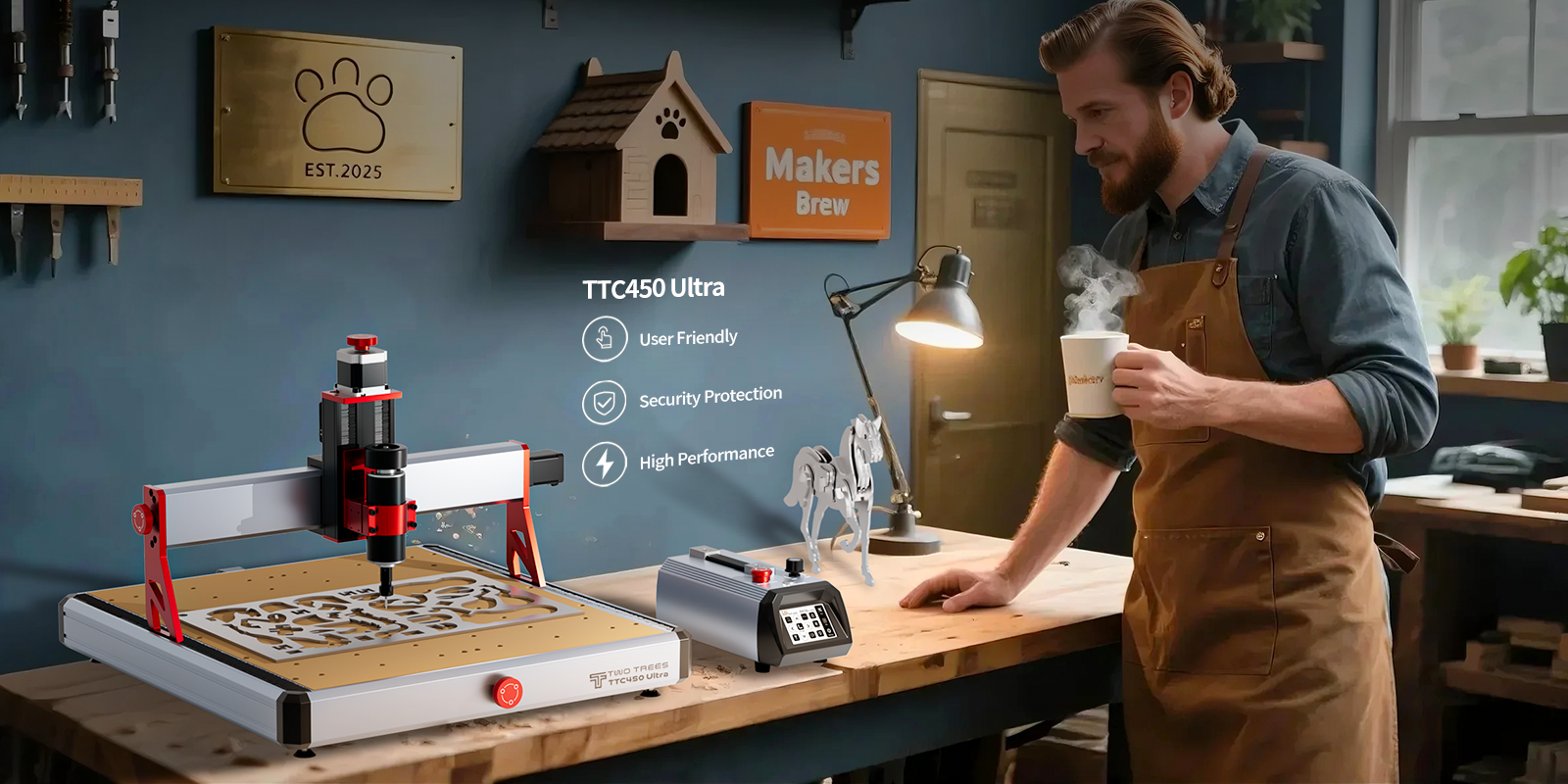 Twotrees TTC450 Ultra CNC Router Machine + 4th Axis + Vacuum Cleaner M1