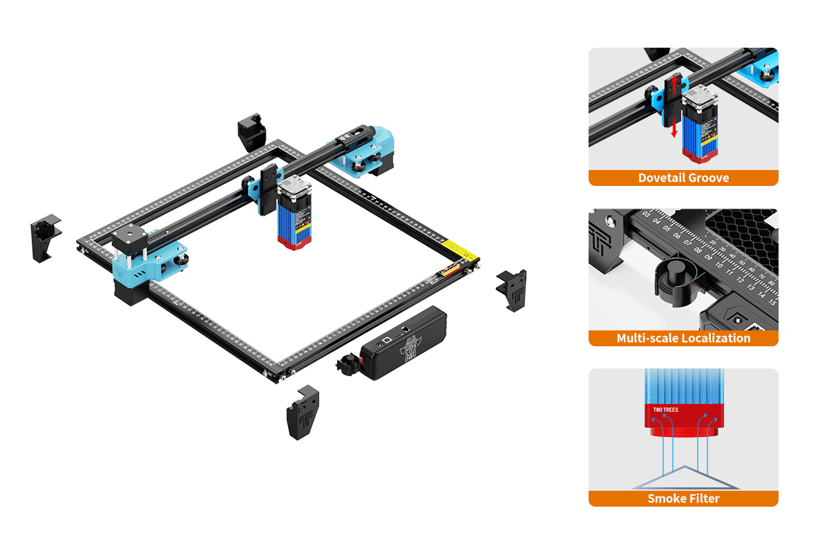 The expansion kit can extend the X/Y axis,making it the most cost-effective large-area laser engraving machine with a maximum expansion area of 600mm*600mm
