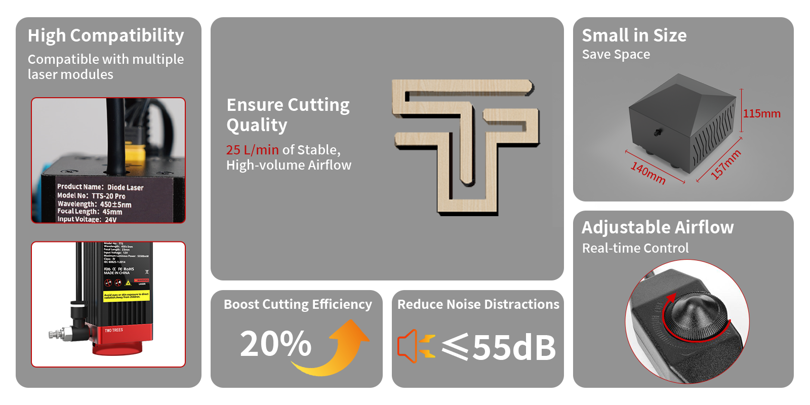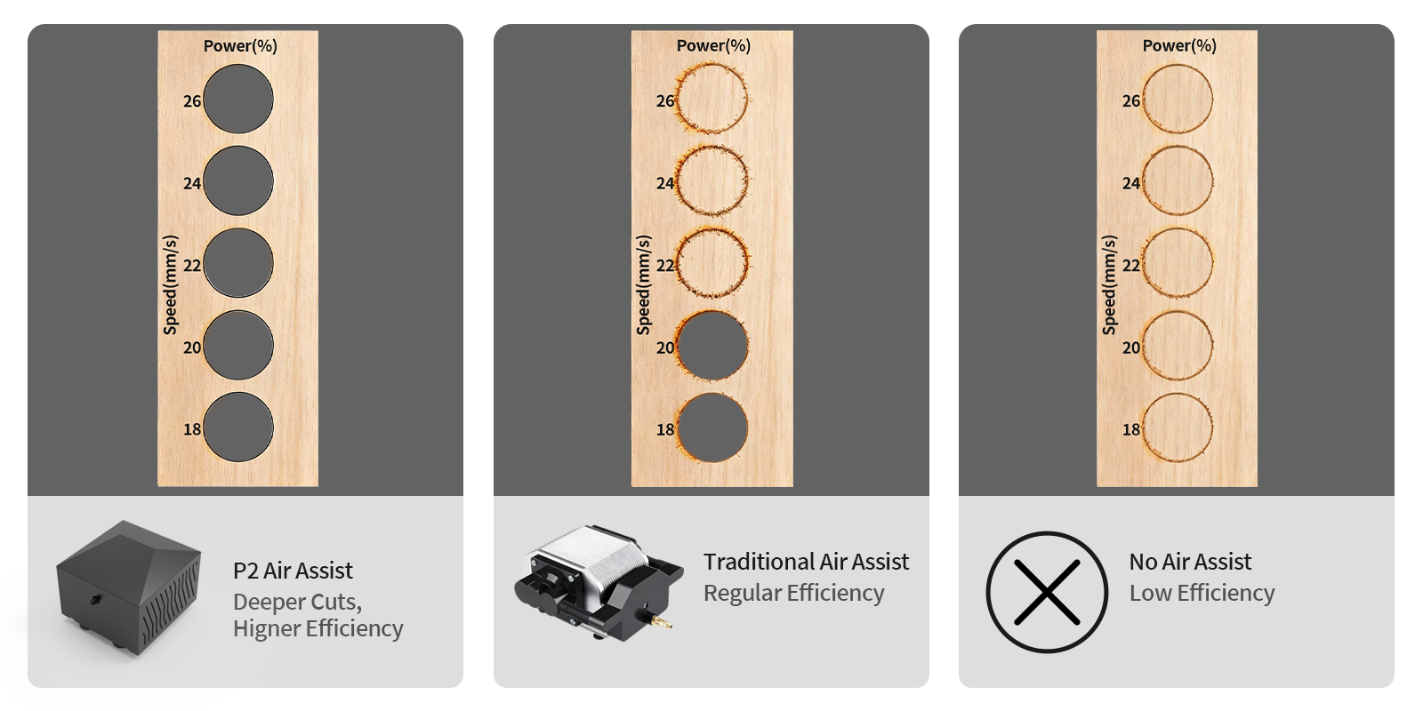 25 L/min of stable, high-volume airflow ensures uninterrupted,high-speed cutting to get jobs done faster, from thin sheets to thick materials