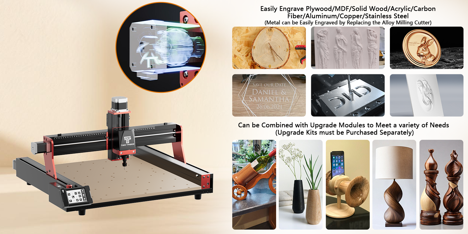 Twotrees TTC450 PRO CNC Router Machine +TC20 Laser Module + 500w Motor + End Mills - TwoTrees Official Shop